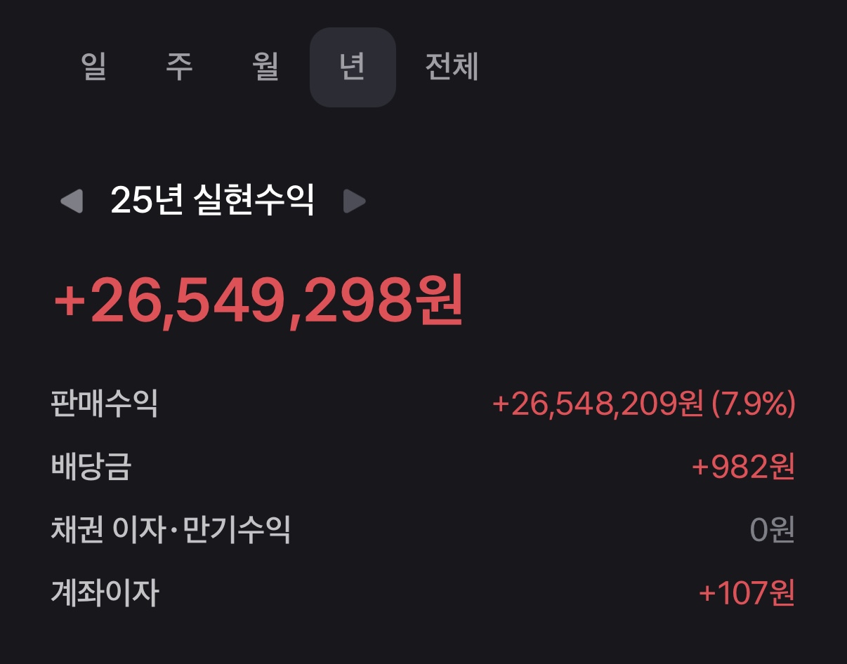 결국 2025년에 그동안의 공부를 통해 얻었던 데이터로 확신을 가지고 매우 큰 비중으로 투자하였고, 6개월만에 7000만원의 수익을 얻을 수 있었다.